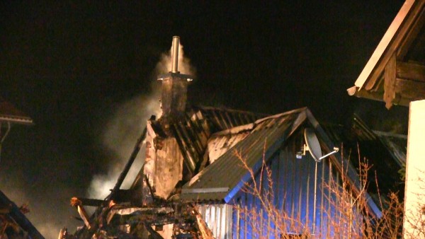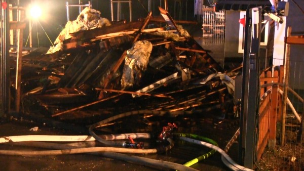 Personen wurden bei dem Brand nicht verletzt. Gegen 23.00 war der Brand trotz des Feuerwehrgroßeinsatzes noch immer am Glimmen. Versuche das Dach weiter auf zu brechen scheiterten. Deshalb wurde ein Bagger angefordert um das Dach weiter für die Feuerwehrmänner zu öffnen.
