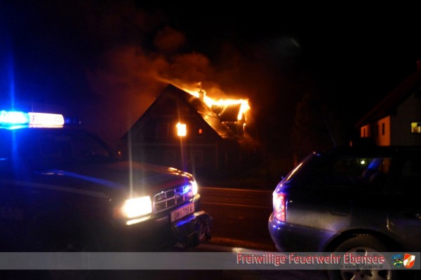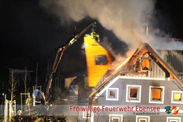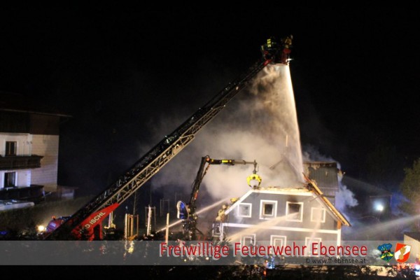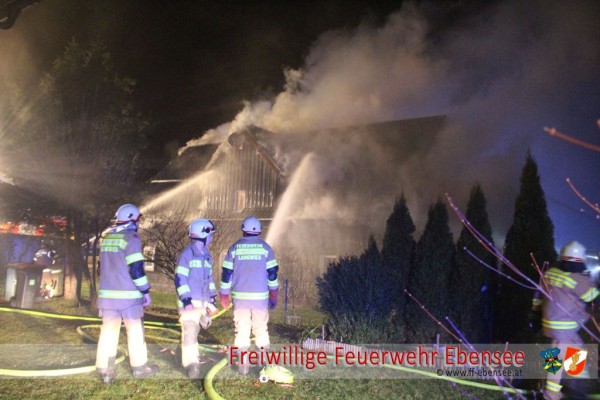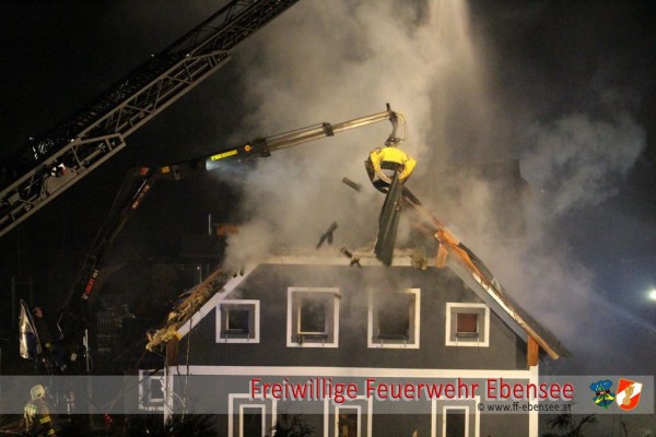 Im Einsatz standen die FF Bad Ischl, FF Ebensee, FF Langwies, FF Rindbach und die FF Roith . Zusätzlich unterstütze ein Holzunternehmer die Floriani-Jünger, er zwickte mit dem Kran das Dach ab, denn das Blechdach erschwerte die Arbeit der Feuerwehrmänner erheblich. Löschversuche innerhalb des Gebäudes waren zu diesem Zeitpunkt bereits viel zu gefährlich.