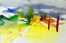Gerlinde Lehner präsentiert im Foyer des Kinos ihre Aquarellkunst. Vor 15 Jahren entdeckte Lehner diese Technik für sich. „Mich faszinieren die spontanen Farbverläufe und zarten Effekte, die durch Übermalen und Aussparen von Flächen entstehen.“, sagt die Vorchdorferin, die inzwischen auch gerne mit den kräftigeren Acrylfarben arbeitet. Dabei waren es vor allem die Malkurse von Inge Peischl, Mitglied des Europäischen Kunstkreises, die sie beim Finden ihres eigenen Stils unterstützten. Vertiefende Malkenntnisse erwarb sie auch an der Kunstakademie Bad Reichenhall und im Bildungshaus Schloss Puchberg. „Meine bevorzugten Motive sind nach wie vor Stillleben und Landschaften, welche sich meiner Meinung nach besonders gut für Aquarelle eignen.“