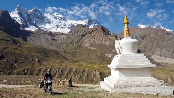 Sein nächster Halt ist Kashgar in Westchina, der legendäre Karawanenstützpunkt an der Seidenstraße. In der bereits dünner werdenden Luft des Karakorum Highway geht’s über den 4.693 m hohen Khunjerab Pass nach Pakistan. Dann endlich Amritsar, die Grenze zu Indien, wo ihn das faszinierende Kaschmir mit den höchsten Passstraßen er Erde erwartet und ihn ins Himalaya Gebiet nach „Little Tibet“ führt. 6 Monate und 27.145 km später ist dann das Ziel erreicht. An der Palmenküste Keralas überlässt er den Staub der Pisten den Wellen des Indischen Ozeans.