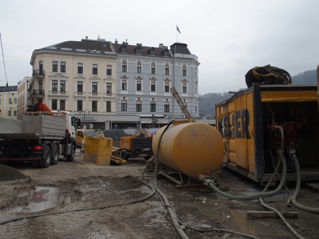 Während die Arbeiten des Düsenstrahlverfahrens in der Theatergasse zügig voranschritten, gab es auch an den anderen Schauplätzen der Baustelle einiges zu beobachten.
