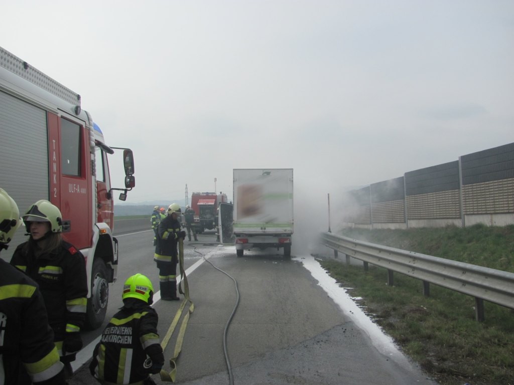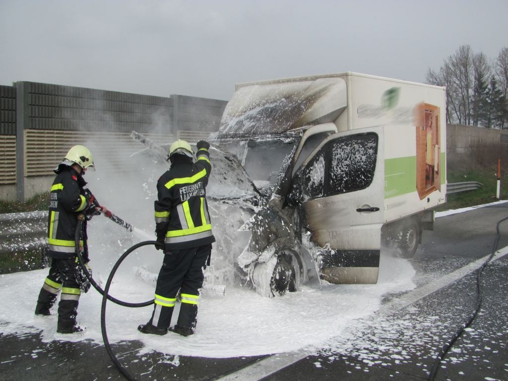 Ein 33-jähriger Fahrer eines Transporters bemerkte am 25. März 2016 gegen 10:30 Uhr dichten Rauch hinter seinem Fahrzeug. Er war unterwegs auf der Autobahn A1 Richtung Salzburg. Er hielt sofort am Pannenstreifen an. Unmittelbar darauf schlugen bereits Flammen aus dem Motorraum. Bedienstete der Autobahnmeisterei versuchten den Brand zu einzudämmen. Erst die Feuerwehren aus Laakirchen und Steyrermühl konnten das Feuer löschen.