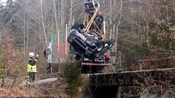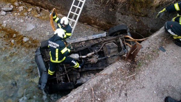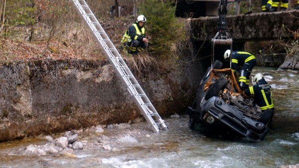 Die Feuerwehr Grünau bereitete das Fahrzeug für die Bergung vor und sicherte es vor Flüssigkeitsverlust. Mit einem Holzlaster wurde das Fahrzeug aus dem Bach gehoben und abtransportiert. Am Fahrzeuge entstand erheblicher Sachschaden. Das beschädigte Brückengeländer wurde provisorisch abgesichert.