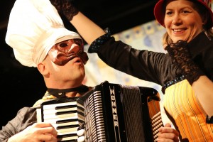 Zwei Spielleute ziehen ihren Karren gefüllt mit Geschichten.Von Stadt zu Stadt, von Land zu Land. Sie reisen, suchen und hoffen, ihr Glück zu finden. Und wenn sie spielen, handelt jedes Stück vom Glück.