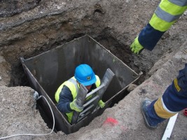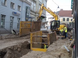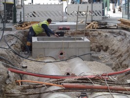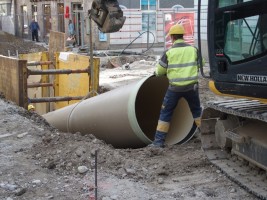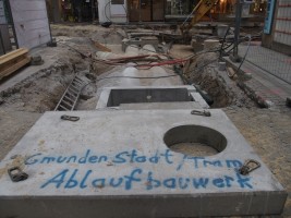 Am anderen Ende des Baufelds wurden weitere große Rohre für den Entlastungskanal in Richtung Graben verlegt und wer es nicht selber gesehen hat, wird sich kaum vorstellen können, wie man es schaffen kann, solche riesigen Teile sogar unterhalb von unzähligen anderen alten und neuen Leitungen zu platzieren. Hut ab und weiter so!