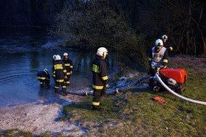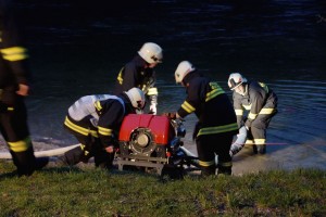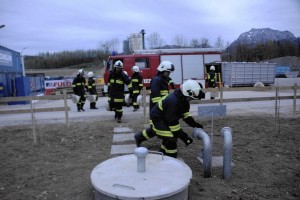 Für einen eventuellen Löscheinsatz musste vorerst das neu errichtete Löschwasserbassin mit 100 m3 Wasser gefüllt werden. Das Löschwasser wurde mit einer ca. 500 Meter langen Schlauchleitung vom Traunufer aus heraufgepumpt. Zwei tragbare Pumpen, eine am Traunufer und eine am Anfahrtsweg Mitte der Schlauchleitung schafften diese Wassermenge in ca. einer Stunde. Im Ernstfall ist so jederzeit genug Löschwasser vorhanden. Außerdem gibt es in unmittelbarer Nähe auch noch zwei Wasserhydranten, die notfalls auch als zusätzliche Wasserquelle angespeist werden können.