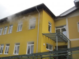 Um 16:57 Uhr ging der Funkspruch mit der Übungsalarmierung ein: „Brand in der Volksschule Roith, mehrere Personen im Inneren eingeschlossen“