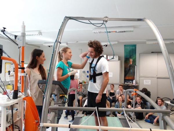 Im Anschluss daran konnten die Schülerinnen und Schüler bei einem Rundgang in den verschiedenen Labors selbst Tests ausprobieren. Auf großes Interesse bei den Schülern stießen etwa ein Fokussierungstest bzw. eine Biofeedback-Messung sowie eine Ergometer-Testung mit Laktatmessung am Laufband.