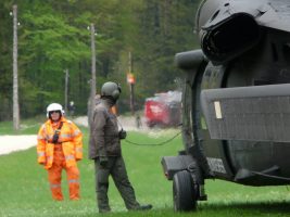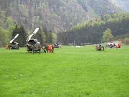 Nach den Erkundungsflügen wurden die Mannschaftstransportflüge, sowie Materialtransporte und in weitere Folge Löschflüge von der fliegerischen Einsatzleitung Bundesheer und Feuerwehr koordiniert. Auf Seiten der Feuerwehr übernahm diese Funktion BR Christian Huemer vom Stützpunkt Scharnstein und Major Andreas Buchmaier von Seiten des Österreichischen Bundesheeres. Die Befüllung der 1000-Liter-Löschbehälter erfolgte direkt am Hubschrauberlandeplatz und der 3.000 Liter Löschwasserbehälter für den S70 „Black Hack“-Transporthubschrauber wurde im Stausee Klaus gefüllt. Nach dem Rücktransport sämtlicher Gerätschaften und Mannschaften war das Übunsszenario um 14.30 Uhr abgearbeitet und das Übungsziel erreicht.