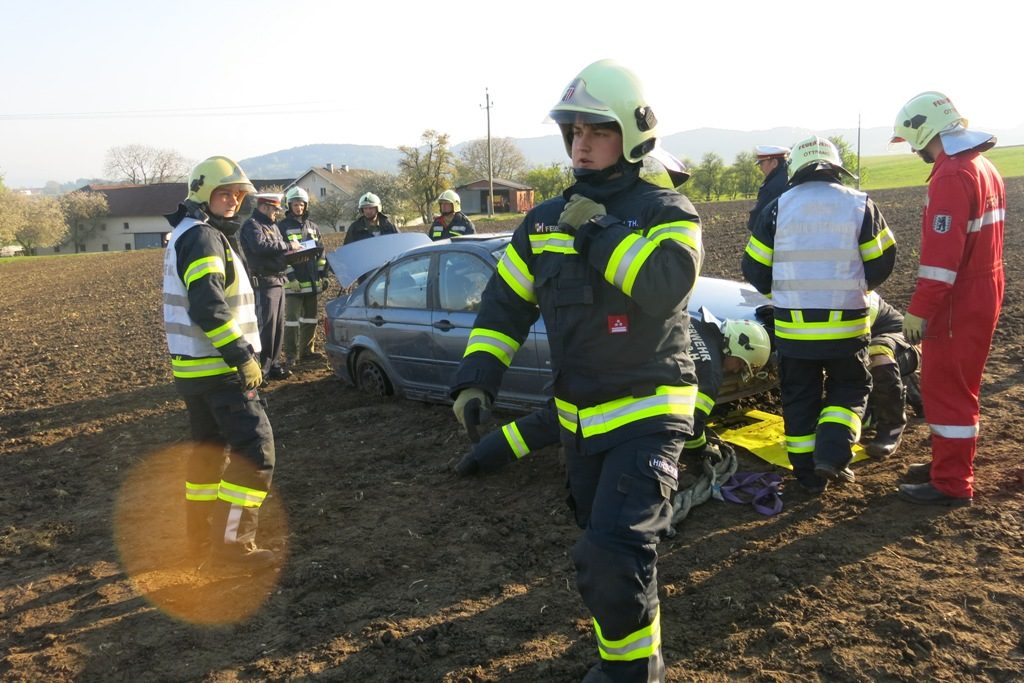 Gestern Abend um 18:05 Uhr wurden die Feuerwehren Ottnang, Bergern und Manning zu einem Verkehrsunfall mit eingeklemmter Person alarmiert. Auf der Tanzboden Bezirksstraße kam eine junge Frau von der Straße ab und überschlug sich mit irem Fahrzeug mehrfach im angrenzenden Acker.