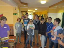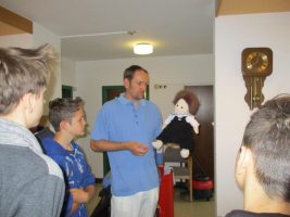 Den Praktischen Teil übernahm FSBA in Aufschulung zum DGKP Jürgen Gillesberger dessen Sohn auch unter den Teilnehmern war. Er führte durch das Haus erklärte hierbei die Abläufe und Logistik. Im Pflegebereich wurden die Pflegebetten, Pflegebadewanne, Badewannenlifter, Rollstuhlwaage,…. vorgeführt. Selbsterfahrungen konnten beim Fahren mit dem Rollator und Rollstuhl, sowie beim Versuch des Blutdruck und Zuckermessens gesammelt werden. Zum Abschluss wurden die jungen Männer noch zum Mittagessen eingeladen.