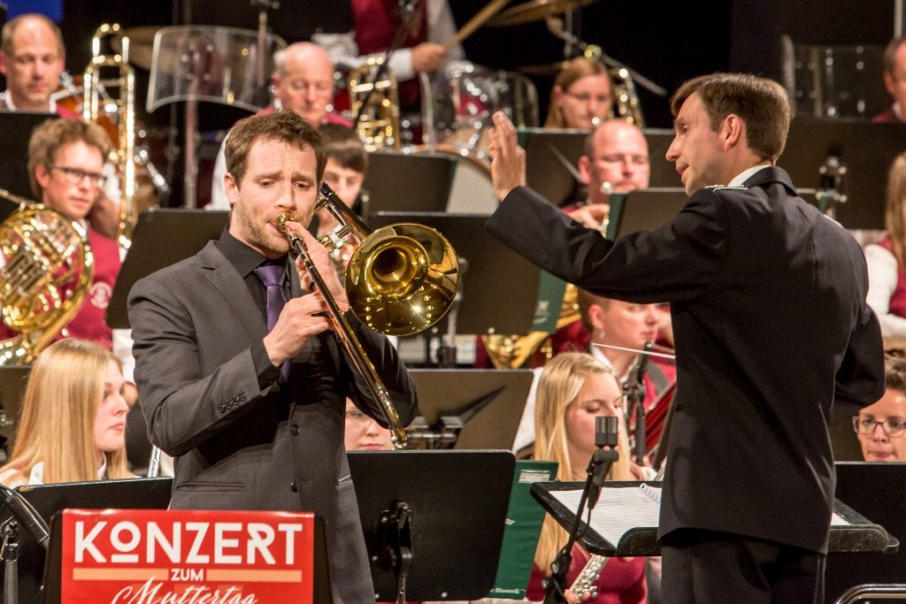 Nach dieser Reise stand wieder ein Solist auf dem Programm: Sascha Hois, vom Radio Symphonie Orchester Wien zeigte sein Können mit dem Stück „Poem à la Carte“ für Soloposaune und Blasorchester.