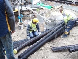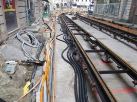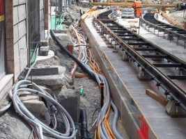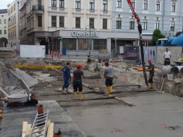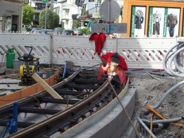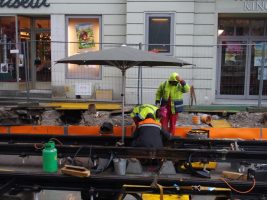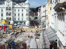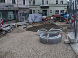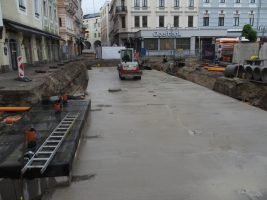Auch im Baufeld 3 (Bereich Gössl bis Forstinger/Rathausplatz) wurde rasch die Grundplatte betoniert, Dämmmatten verlegt und sogar noch die Schutzbetonschicht darüber gezogen, so dass auch hier alles für die letzte Schienenlieferung in diesem Bauabschnitt bereit ist.