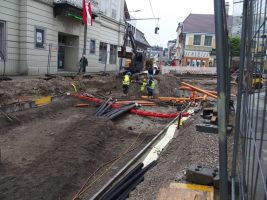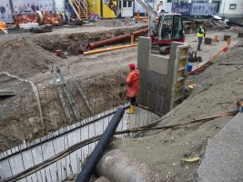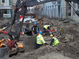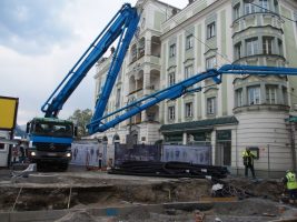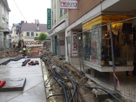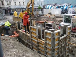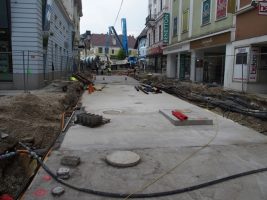 Im Vordergrund standen diese Woche weitere Betonierarbeiten an der Grundplatte um am Ende der Woche bereit für die erste große Schwingungsmessung in diesem Bauabschnitt zu sein. Zeitgleich erfolgte die Fertigstellung des Schachtes im Bereich Kirchengasse und die Sanierung eines Kanalabschnittes in der Badgasse, der – wie sollte es auch anders sein – wieder von unzähligen Leitungen gekreuzt wurde.
