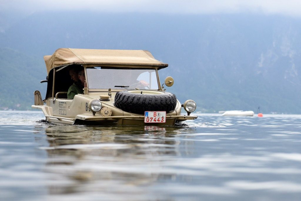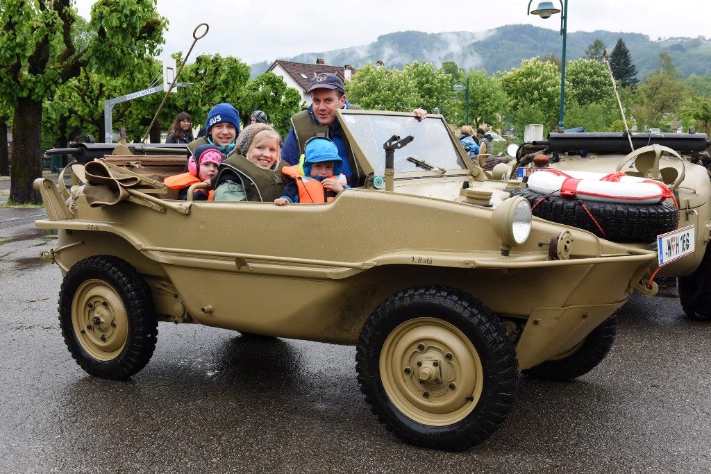 Bei mehreren Präsentationsfahrten – von Altmünster nach Traunkirchen, von Ebensee nach Traunkirchen und von Altmünster zum Schloss Ort – zeigten die Autos ihre Schwimmkünste. Mancher Teilnehmer nutzte das Spektakel auch gleich für eine Familienausfahrt mit Kind und Kegel.