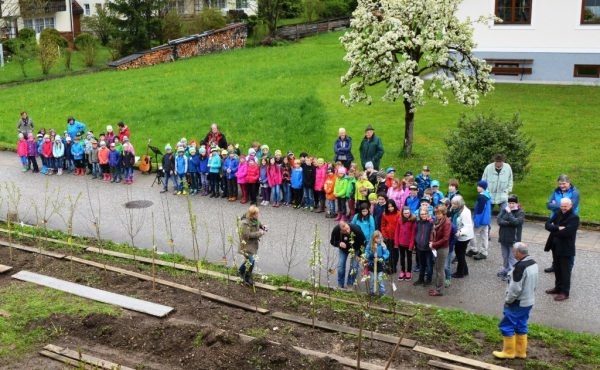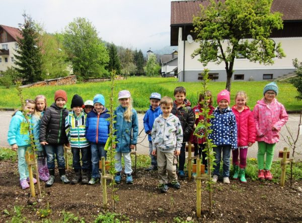 Ein Geschenk der besonderen Art erhielten heuer alle Schülerinnen und Schüler der 1. Klassen in der Volksschule St. Agatha. Der Obst- und Gartenbauverein Bad Goisern übergab ihnen nämlich 28 Obstbäume, die in einer außergewöhnlichen Feier im Beisein vieler Eltern und Bürgermeister Peter Ellmer gemeinsam im Schulgarten eingepflanzt wurden.