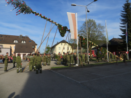 Nach einer Stunde harter Arbeit stand der Baum und schmückt nun den ganzen Mai den Ortsplatz von Pinsdorf. Großer Dank richtet sich an Herrn Hackmair sowie an Frau Mayr die den Baum bzw. das Material für die Kränze gespendet haben.