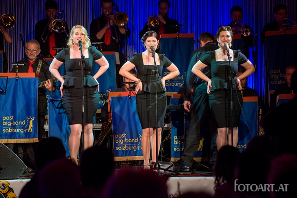Bei „A tribute to the Andrew Sisters“ faszinierte das Trio rund um Eva Kirchner die Gäste mit gesanglicher Meisterleistung. Sie verkörperten die Ikonen stilecht und versprühten den Charme der verträumten 50er Jahre. Live begleitet wurden sie dabei von der renommierten Post Big Band Salzburg, die mit ihren hervorragenden Musikern den Abend zu einem wunderschönen tänzerischen Erlebnis machte.