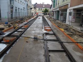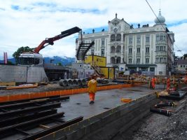 Schon Anfang der Woche erfolgte die letzte Gleislieferung für diesen Bauabschnitt und somit ist nun auch der Rathausplatz seit vielen, vielen Jahren wieder „auf Schiene“.