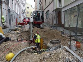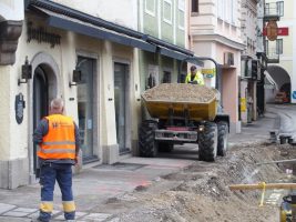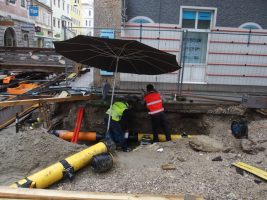 Als nächstes folgt nach und nach das Abtragen der alten asphaltierten Gehsteige und damit der Beginn der Pflasterarbeiten. Es gilt nun, Tag für Tag zu beobachten, wie die Baugruben wieder verschlossen werden und bald eine schöne neue Oberfläche nach und nach die Stadt erobert. Das steigert die Vorfreude aufs Endergebnis umso mehr!