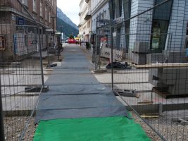 Trotz der Arbeiten in den Gehsteigbereichen sind auch alle Geschäfte gut erreichbar und die Eingänge werden, wo es nötig ist, mit kleinen Überbrückungen zugängig gemacht. Vom Rathaus bis zu Trendmaker wurde ein neuer Übergang übers Baufeld eingerichtet und wie gewohnt mit grünem Teppich ausgelegt. Wie wär’s also mit einem Baustellen- und Shoppingbummel? Ein Besuch lohnt sich!