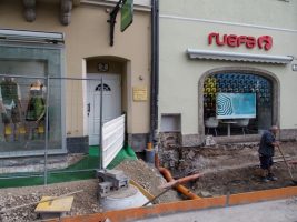 Wir danken allen Anrainern und Kaufleuten der vordersten Front für ihre Geduld, die zur Zeit durch die erhöhte Lärmbelastung (Steine schneiden) doch sehr herausgefordert wird.