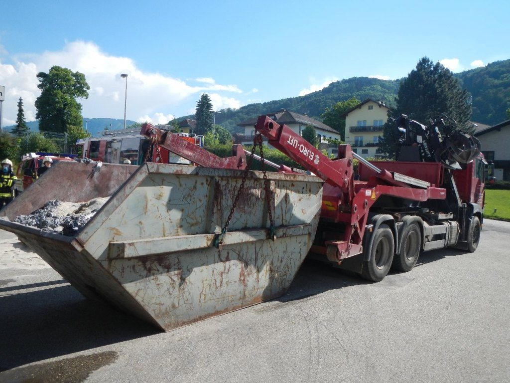 Die FF Altmünster wurde um 16:11 Uhr alarmiert und rückte mit 4 Fahrzeugen und 17 Einsatzkräften zum Brandgeschehen aus. Die Lageerkundung ergab, einen Brand in einem Container für Metallabfälle – dieser befand sich in einer nach 2 Seiten offenen Halle. Die ersten Löschmaßnahmen wurden mittels Löschsand durchgeführt.