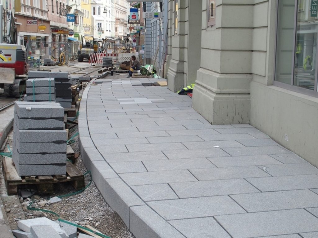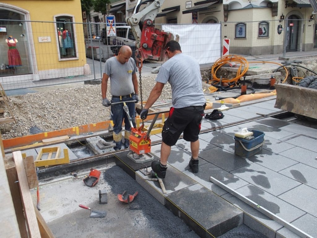 Beim aktuellen Baulos der Gmundner Straßenbahn schreiten die Arbeiten planmäßig voran. Inzwischen haben die Pflasterungsarbeiten begonnen und Gehsteige, Fahrbahn und Rathausplatz erhalten Stück für Stück ihr neues Gesicht. Einer Verkehrsfreigabe am 22. Juli sollte also nichts im Wege stehen.