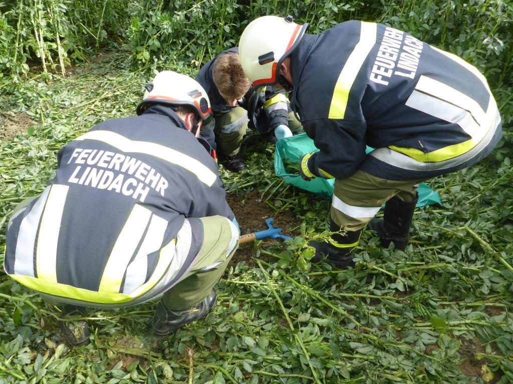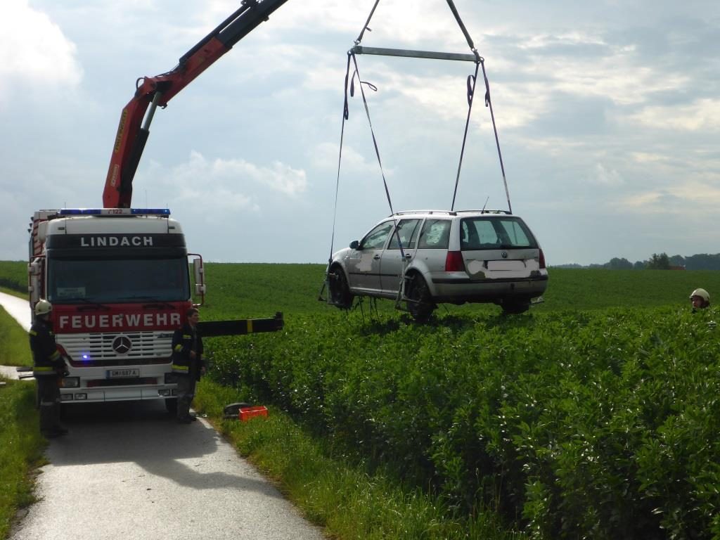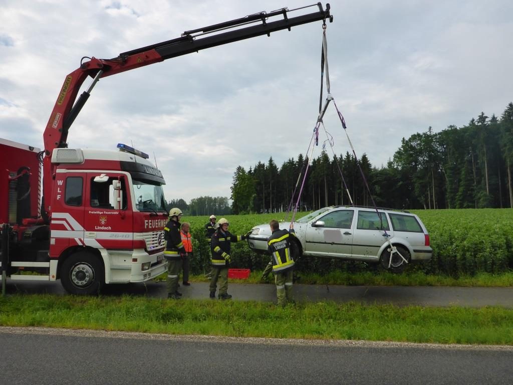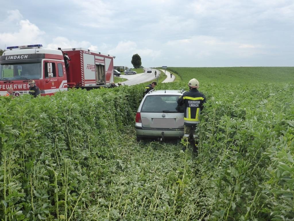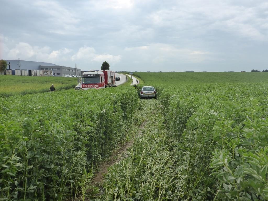 Die FF Lindach wurde am Morgen des 26.06.2016 von der Polizei zu einem Einsatz gerufen. Ein Fahrer kam in der Nacht auf Sonntag von der Straße ab, riss dabei das Betonfundament eines Verkehrsleitpflockes aus, überfuhr eine Tafel und blieb erst 100 Meter tief im Feld stehen. Danach soll der Lenker einfach ausgestiegen sein und sei nach Hause gegangen.