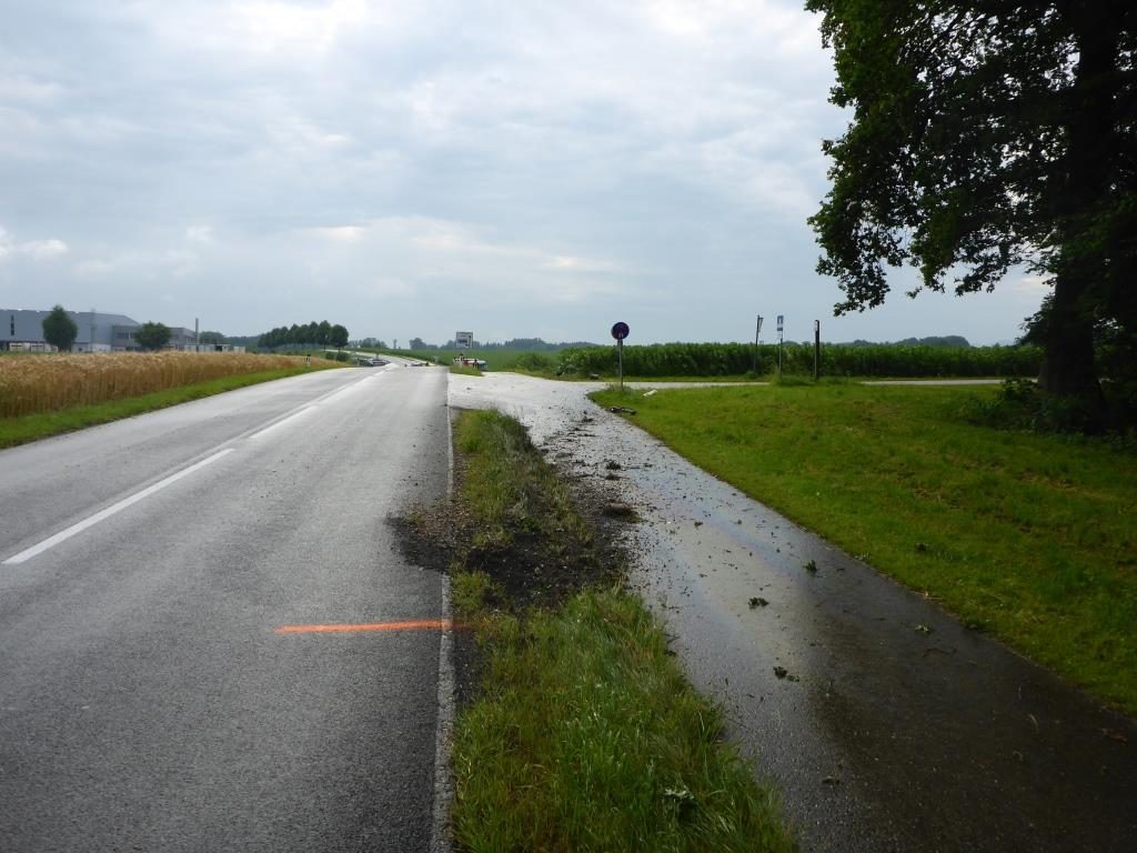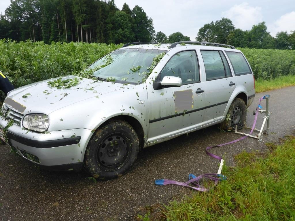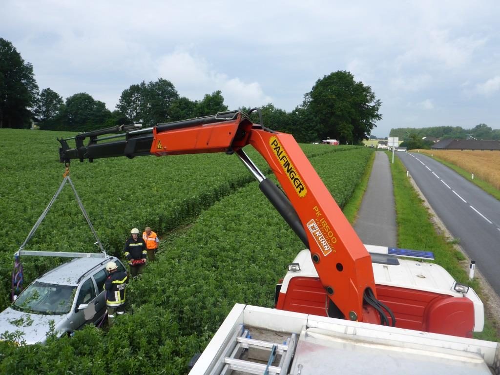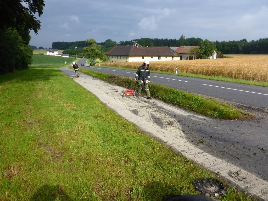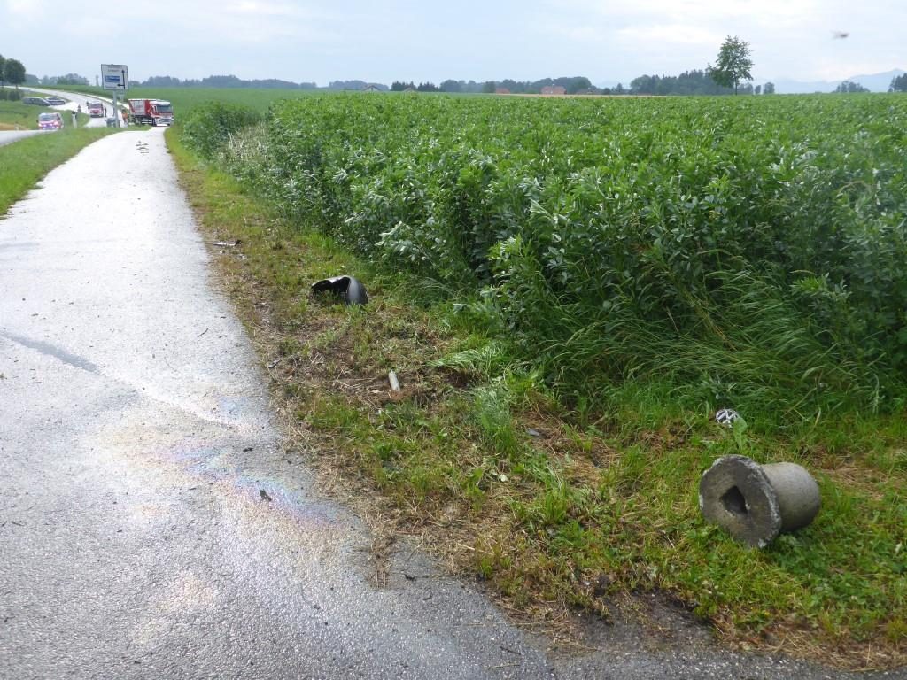 Die FF Lindach wurde am Morgen des 26.06.2016 von der Polizei zu einem Einsatz gerufen. Ein Fahrer kam in der Nacht auf Sonntag von der Straße ab, riss dabei das Betonfundament eines Verkehrsleitpflockes aus, überfuhr eine Tafel und blieb erst 100 Meter tief im Feld stehen. Danach soll der Lenker einfach ausgestiegen sein und sei nach Hause gegangen.