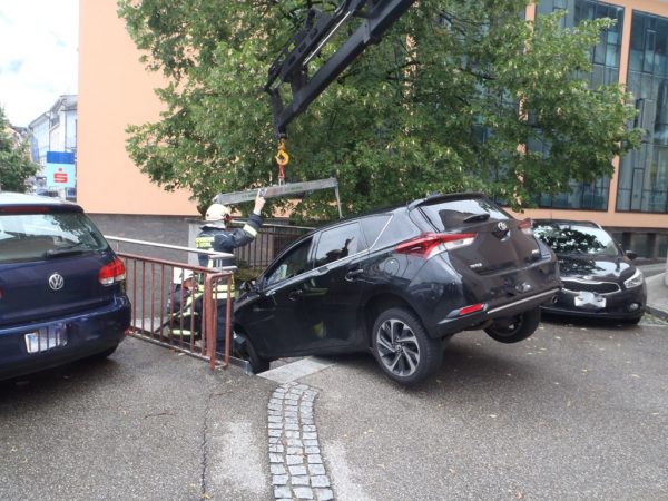 Ein Urlauber wollte vom Kirchenparkplatz abfahren. Aus ungeklärter Ursache nahm er als Ausfahrt die Kirchenplatzstiegen und blieb in weiterer Folge hängen. Ein Gemeindemitarbeiter, welcher Zeuge des Missgeschicks wurde, veranlasste umgehend die Alarmierung der Hauptfeuerwache.