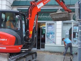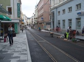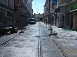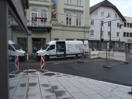 Nachdem in KW 29 die letzten großen Arbeiten (Pflasterungen, Fugenverguss…) verrichtet wurden, konnten schließlich die Bodenmarkierungen aufgebracht und die Ampeln in Betrieb genommen werden. Pünktlich am 22. Juli um 17:00 Uhr wurde die Fahrbahn dann wie versprochen auch wieder für den Verkehr freigegeben.