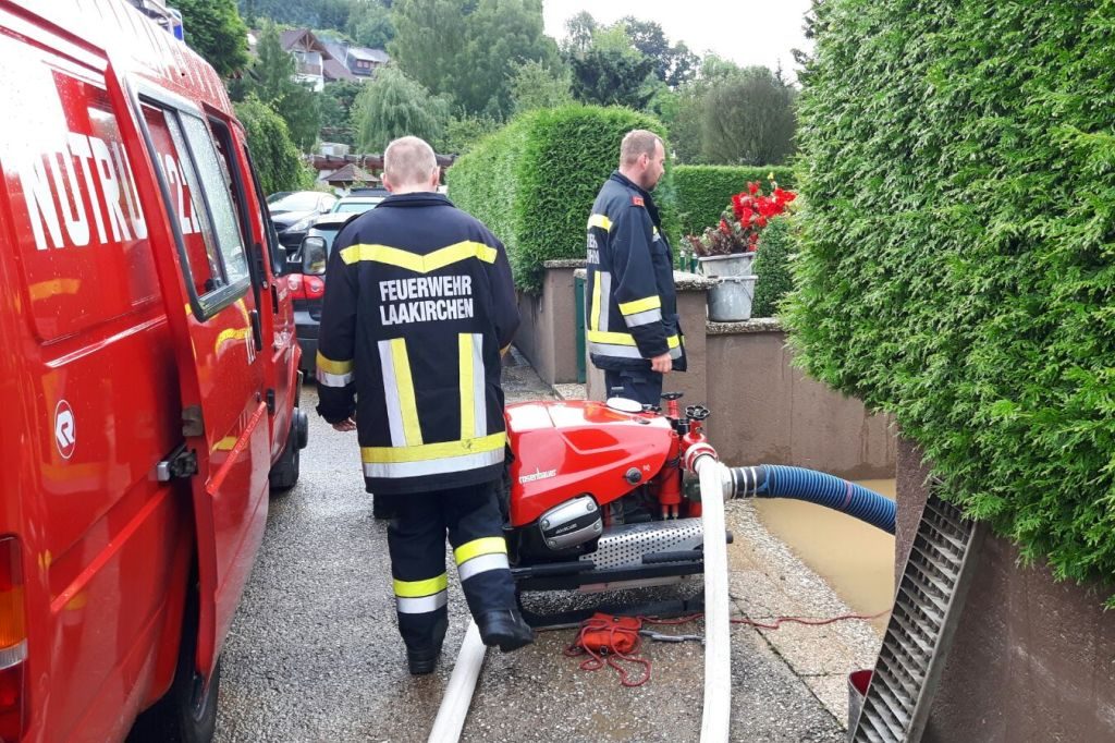 „So etwas hat Laakirchen noch nie gesehen“ beschrieb der Einsatzleiter, Pflichtbereichskommandant ABI Jürgen Sturm, prägnant die Lage. Neben den sofort alarmierten Feuerwehren von Laakirchen eilten auch die Feuerwehren der Umgebung nach Laakirchen um zu helfen. Am Sonntag wurde zusätzlich der 3. F-KAT-Zug des Bezirkes Gmunden alarmiert und mit schweren Pumpen eingesetzt. F-KAT-Züge sind überörtlich organisierte Feuerwehreinheiten, die aus mehreren schlagkräftigen Feuerwehren mit Spezialgerät bestehen.
