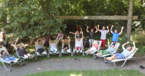 Nach intensiven Arbeitsphasen erholen sich die Mitarbeiter gerne im schattigen Garten und wünschten sich Liegen zum Relaxen oder für ein erholsames Schläfchen. Die Firma EXITO kam diesen Wunsch nach und spendete neun Gartenliegen.