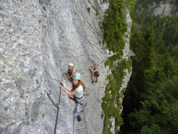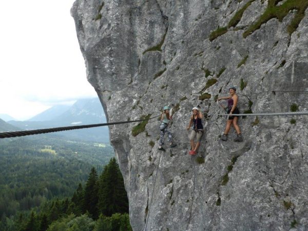 „Mein Land-Dein Land“, „Leadership“ und der „Höhenweg- Klettersteig“ bieten am Predigstuhl bei Bad Goisern die beste Möglichkeit, sich mit dieser Sportart anzufreunden. Ein geselliger Abschluss im Berghof mit Seitlpfeifern beendete den schönene Ferientag.