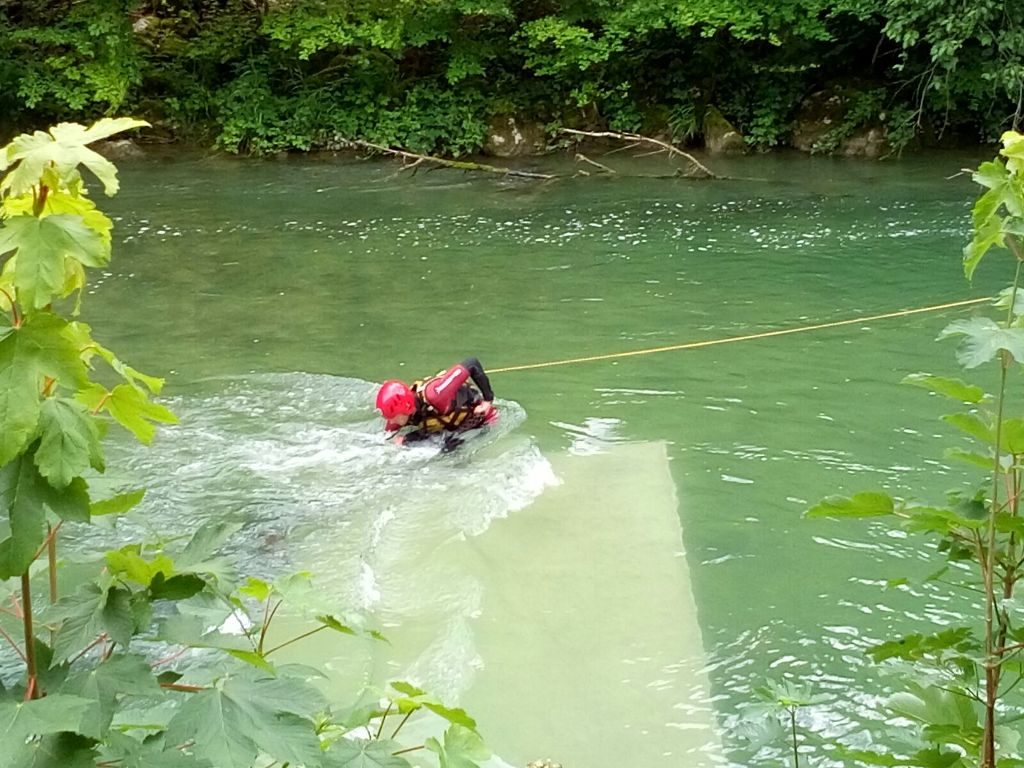 Zusätzlich wurden sämtliche Arbeiten aller Einsatzkräfte von der Wasserseite her gesichert, um bei einem Sturz einer Einsatzkraft in die Strömung sofort helfen zu können.