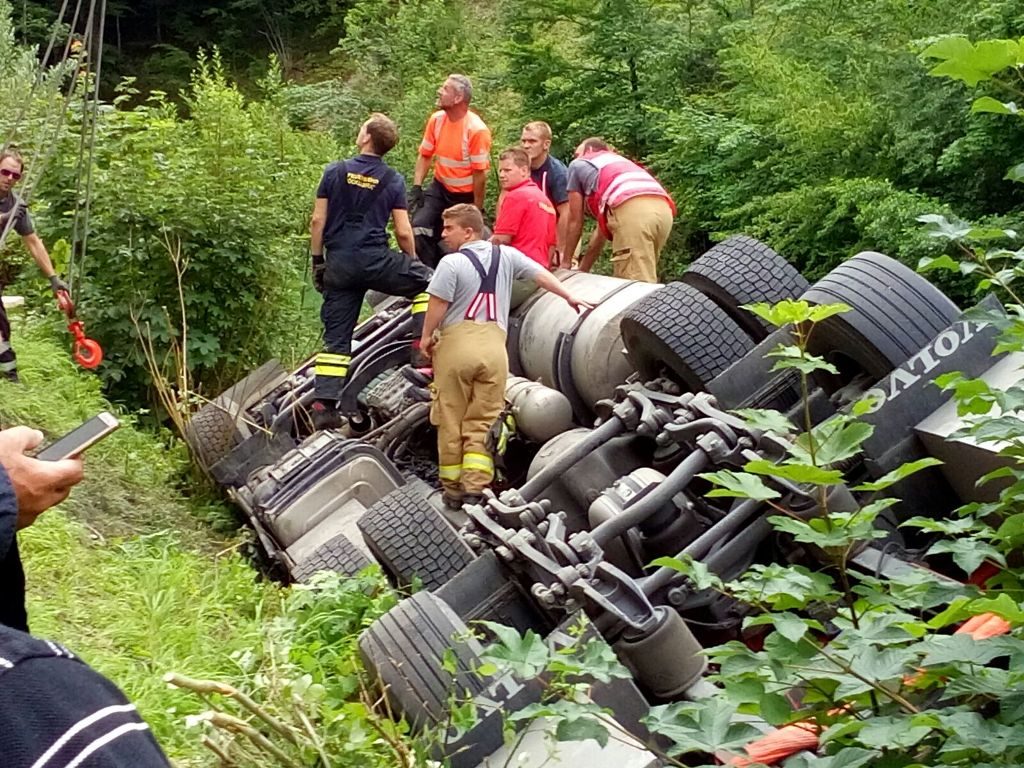 Die Bergung erwies sich als schwierig. Drei Wildwasserretter der oberösterreichischen Wasserrettung unterstützten die Feuerwehr und die Abschleppfirma bei der Bergung und beim Aufbau einer Ölsperre.