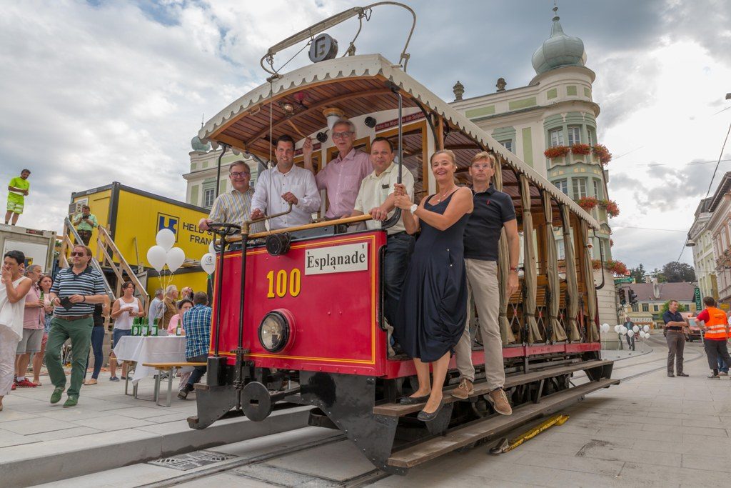 Auch wenn der Straßenbahnbetrieb in und durch das Zentrum erst nach Fertigstellung der Durchbindungsarbeiten startet, war anlässlich der Baustellenjause am 21. Juli eine der historischen Straßenbahngarnituren am Rathausplatz. „Für mich ist das heute ein sehr schönes und sichtbares Zeichen, dass die Straßenbahn einfach zu Gmunden gehört und eine Bereicherung für die Stadt ist“, sagt der Gmundner Bürgermeister Stefan Krapf. „Es ist für mich aber auch ein klares Zeichen, dass es mit dem Bau der stadt.regio.tram Gmunden-Vorchdorf vorwärts geht. Wie auch bei den letzten Bauabschnitten am Franz-Josef-Platz und Klosterplatz ist es gelungen, den versprochenen Fertigstellungstermin pünktlich einzuhalten. Mein Dank gilt daher den Bauarbeitern, die hier einen wichtigen Beitrag geleistet haben.“ Nach 5-monatiger Bauzeit wurden nicht nur die Schienen neu verlegt, es wurde auch viel in eine neue Infrastruktur investiert. „An dieser Stelle möchte ich nochmals betonen, dass die SRT vielmehr als nur ein Straßenbahnprojekt ist. Mit den Errichtungskosten werden gleichzeitig auch Kanal, Gas- und Stromleitungen und vieles andere im Unterbau erneuert. Alles Sanierungsarbeiten, die die Stadt Gmunden in nächste Zukunft selbst hätte finanzieren müssen“, so Krapf.