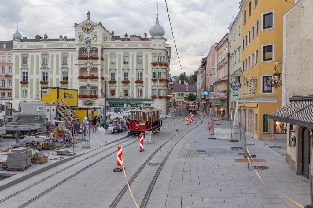 1975 wurde die Endhaltestelle der Gmundner Straßenbahn vom Rathausplatz zum Franz-Josef-Platz verlegt. Mit der pünktlichen Fertigstellung der Bauarbeiten zwischen Graben und Kammerhofgasse geht die Trasse nun wieder bis ins Stadtzentrum. Heute werden die Bauarbeiten des Bauloses 2B-3 abgeschlossen und die Straße wieder für den Verkehr geöffnet.