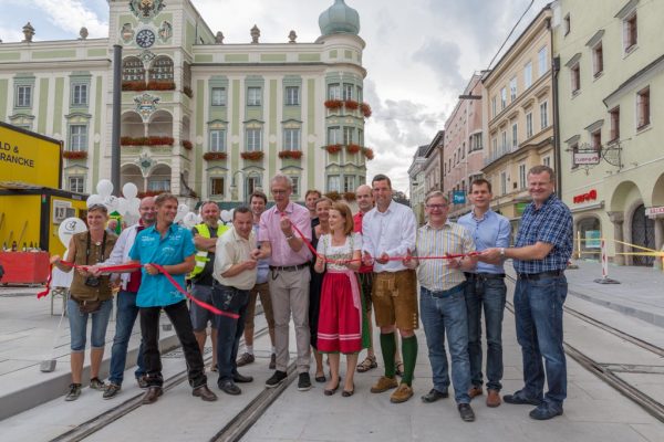 Verkehrsfreigabe, heute Nachmittag Die Verkehrsfreigabe erfolgt am Freitag den 22. Juli um 17.00 Uhr. Kleinere Restarbeiten, die aber den Verkehr nicht beeinflussen, werden in der letzten Juliwoche noch erledigt. Die Neugestaltung der Innenstadt im Zuge des SRT-Projekts reicht am Westufer mittlerweile vom Franz-Josef-Platz bis zum Beginn der Kammerhofgasse. Eine Tatsache, die auch den Verkehrsreferenten Stadtrat Wolfgang Sageder freut: „Stück für Stück fügen sich die Einzelteile zu einem sehr attraktiven Gesamtbild. Die neu gepflasterten Gehsteige laden ein zum Flanieren und Einkaufen. Das neue Flair ist Vorbote für die geplante Begegnungszone, in der die Gleichberechtigung von Fußgängern, Individual- und öffentlichem Verkehr zu einer Verkehrsberuhigung der Innenstadt führen wird.“