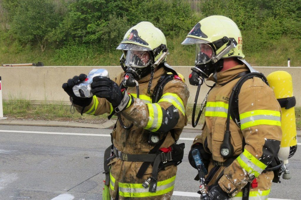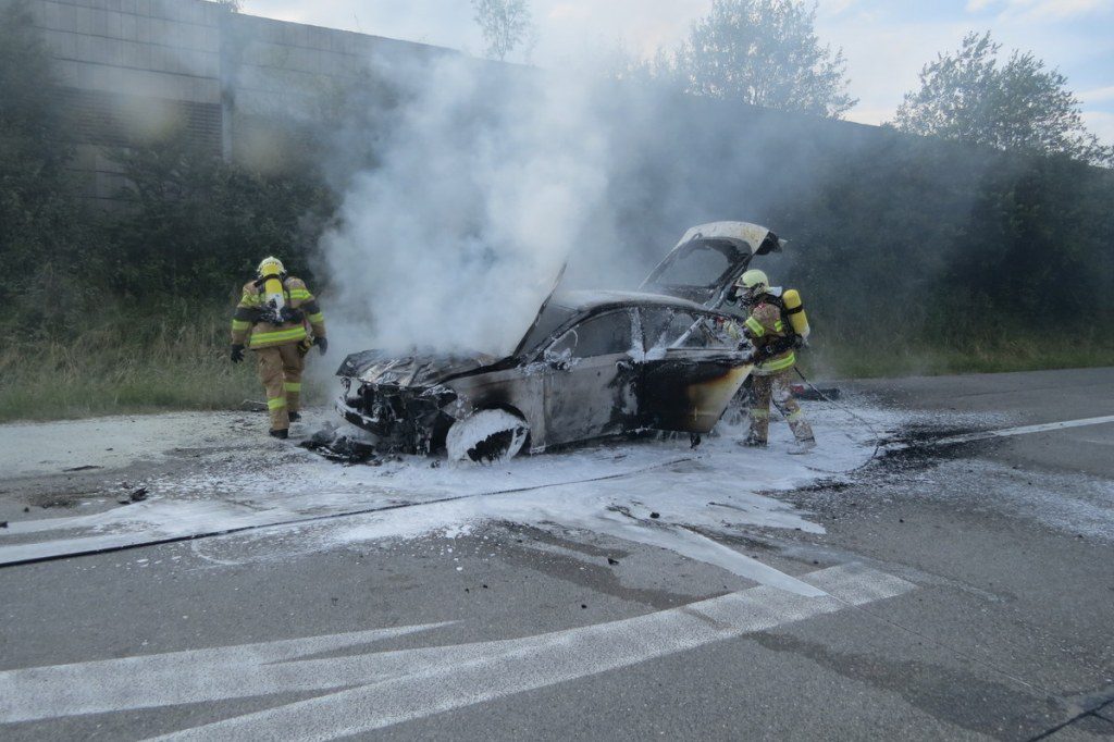 Beim Eintreffen der Feuerwehr stand das Fahrzeug im vorderen Bereich bereits in Vollbrand. Die Kameraden nutzen Löschschaum und konnten so den Brand schnell mit nur 150l Wasser mit UHPS (Ultra High Pressure System) vollständig löschen. Anschließend wurde noch das Abschleppunternehmen bei der Bergung unterstützt und die Autobahn gereinigt. Nach 1,5 Stunden war der Einsatz beendet und beide Fahrspuren konnten seitens der Polizei wieder für den Verkehr freigegeben werden.