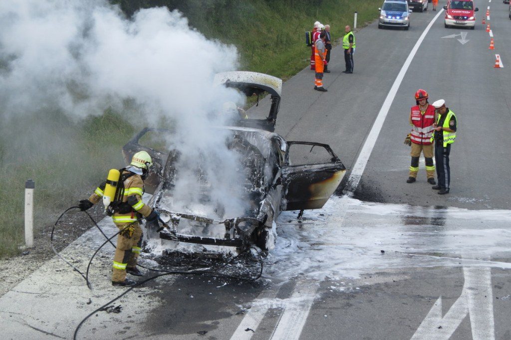 Hinweis seitens der Feuerwehr St. Georgen im Attergau: Sobald Rauch aus dem Fahrzeug aufsteigt oder Brandgeruch wahrnehmbar ist, das Fahrzeug gesichert abstellen und bitte sofort verlassen. Anschließend den Notruf 122 wählen!