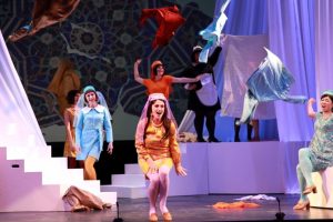 Zwei bedeutende österreichische Zeitungen setzen sich mit dem Stoff der Operette auseinander und finden schöne Worte für die Premiere des Lehár Festivals in Bad Ischl. Dabei kommt Thomas Hödlmoser (Türkische Frauen schwärmen von „Reformen am Bosporus“, Salzburger Nachrichten, 25.7.2016) zu ernsthaften politischen Parallelen. Doch bleibt Leonard Prinsloo in seiner Regie der Gattung Operette treu.