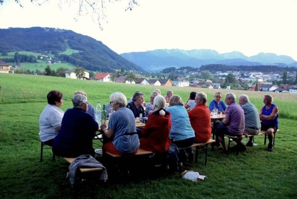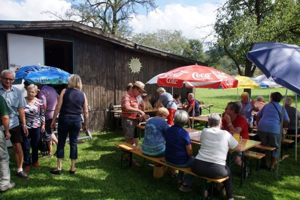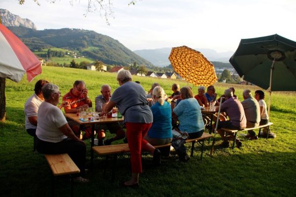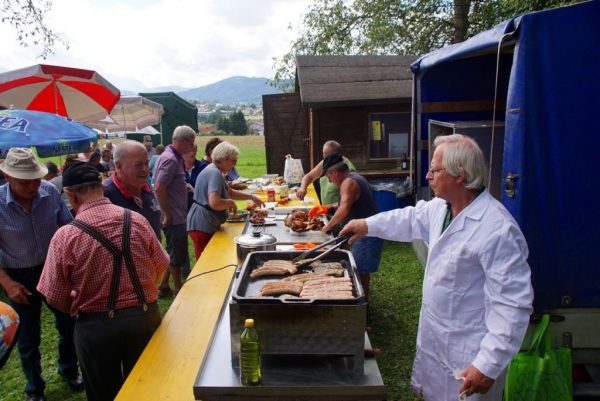 Alle Jahre treffen sich die Pensionisten Gschwandt im Vereinshaus Baumgarten zu einer gemütlichen Grillerei. So auch am Freitag 19.8.2016 bei strahlend schönem Wetter. Als die ersten Gäste eintrafen, waren alle Vorbereitungen bereits durch Regina und Kurt Viertbauer mit ihrem Team perfekt abgeschlossen, die Grillhenderl drehten sich schon auf den Spießen, ein großes Salat,- und Kuchenbuffet, gesponsert von den Frauen des Pensionistenverbandes Gschwandt wartete auf die Abnehmer, Bratwürste und marinierter Schopf wurde vom Vorsitzenden Kurt Viertbauer selbst zubereitet und die kühlen Getränke wurden an die Tische serviert.