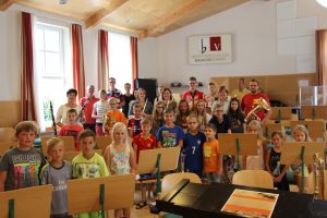 Im Zuge des von den Timelkamer ÖVP-Frauen veranstalteten Ferienspaßes kamen 20 Kinder zur Marktmusik Timelkam und konnten sich dort über die verschieden Instrumente informieren und diese auch ausprobieren.