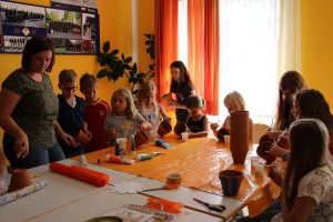 Nach dem anstrengenden Blasen und Trommeln gab es eine kleine Stärkung und die Kinder bastelten eine Trommel, welche sie mit nach Hause nehmen durften..