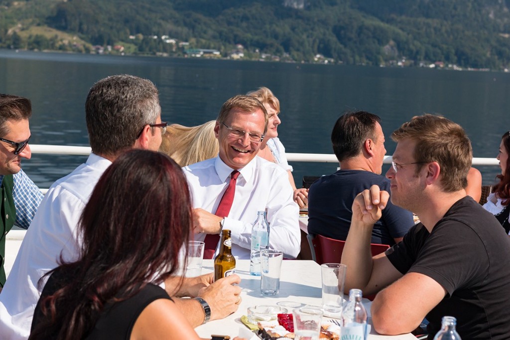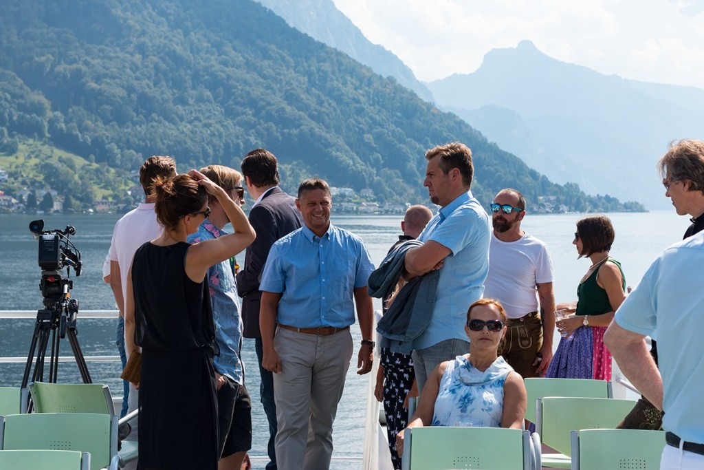 Rund 150 Wegbegleiter & Partner feierten Anfang September das 5-jährige Bestehen des Salzkammergut Nachrichtensenders. Das salzi-Team und die Crew der Poseidon hatten selbstverständlich bestes Sommerwetter bestellt. Für ausreichend Unterhaltung, Snacks und kühle Getränke war natürlich gesorgt. Die Konditorei Ottet, das Backhaus Hinterwirth und die Fleischhauerei Gruber verwöhnten die Festgäste, die Brauerei Zipf ließ niemanden auf hoher See auf dem Trockenen sitzen. Musikalisch empfangen wurden die Gäste durch eine Abordnung der Werkskapelle Steyrermühl, die kurzweilige Moderation übernahm die charmante Birgit Brunsteiner, gleich 3 Kamerateams fingen das Geschehen an Board ein.