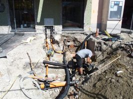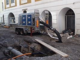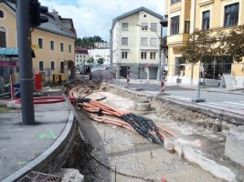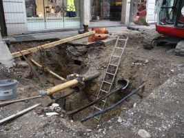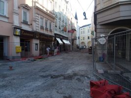 Wie an den Bildern gut zu erkennen ist, sind wir mittlerweile auch beim großen Thema „Leitungen“ angekommen, das uns in seiner Vielfalt besonders in der Kammerhofgasse wohl noch eine Weile beschäftigen wird… Suchen, finden, freilegen, umlegen, erneuern, abschließen, umschließen, anschließen usw. und das jeweils mit Wasser-, Gas- und Stromleitungen.