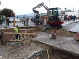 Bei Trachten Reingruber an der Schiffslände wurden die Leitungen erfolgreich an die unter dem See verlegten Leitungen angeschlossen und die betreffende Baugrube konnte zum Wochenende hin wieder verschlossen werden.