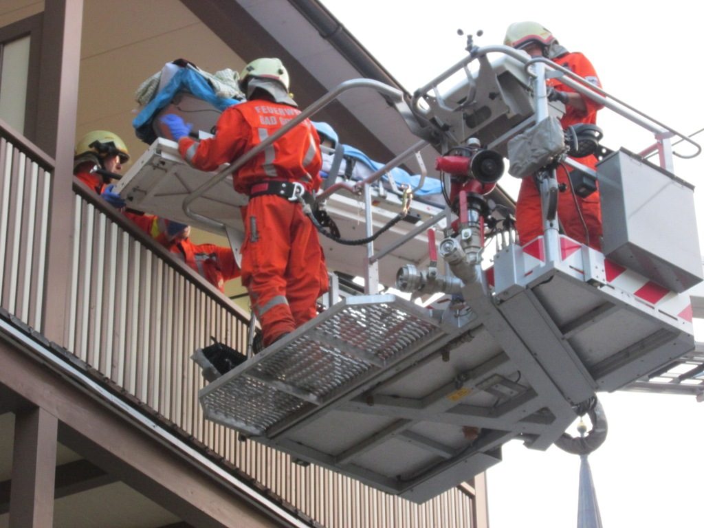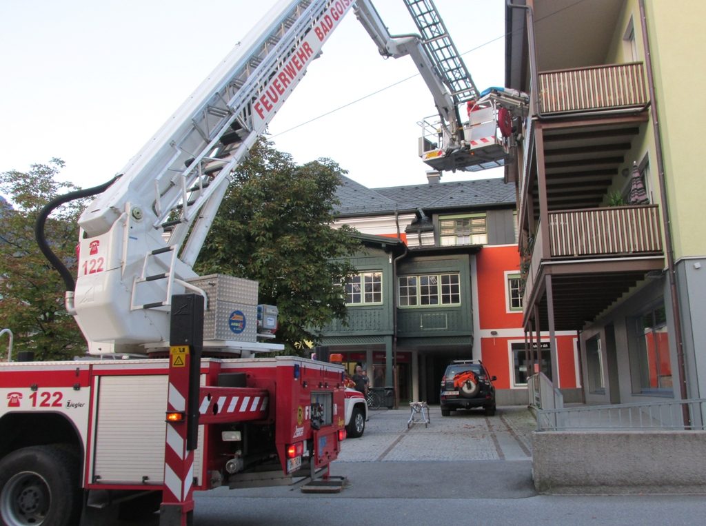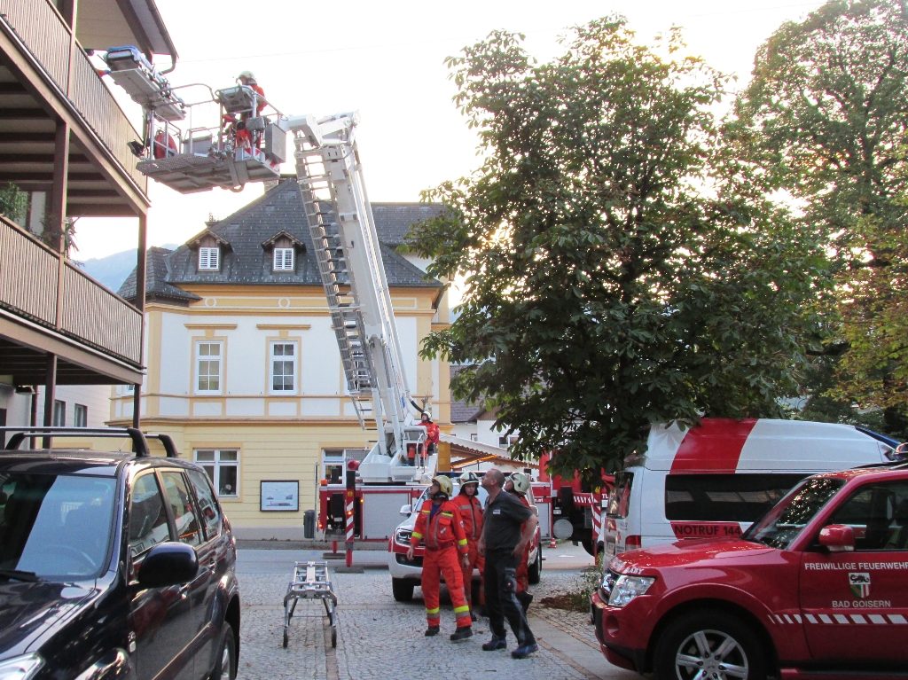 Um dies möglichst schonend durchzuführend, entschied sich der Notarzt für die Unterstützung der Feuerwehr. Anstatt über das Stiegenhaus wurde die Patientin auf der Krankentrage liegend mittels Hubsteiger der FF Bad Goisern vom Balkon aus sanft zu Boden gehoben. Von dort aus übernahmen dann der Notarzt und Rettungsdienst den Transport ins Krankenhaus.